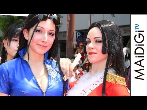 愛知県で開催中のコスプレの祭典「世界コスプレサミット2016」のレッドカーペットイベントが8月6日、名古屋市中区の繁華街・栄の錦通りを封鎖して行われた。この日の同市を含む愛知県西部地方の最高予想気温(気象庁)は35度で、猛暑の中、コスプレ世界一を競うメインイベント「世界コスプレチャンピオンシップ」に出場する、過去最多30カ国・地域の代表コスプレーヤー60人が思い思いのコスプレで、約200メートルのレッドカーペットを、約1時間にわたりパレードした。