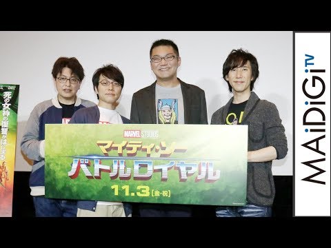 映画「マイティ・ソー バトルロイヤル」(タイカ・ワイティティ監督)の生放送イベントが11月2日、東京都内で行われ、日本語吹き替え版でソー役を務める声優の三宅健太さん、ソーの弟・ロキ役を務める平川大輔さんが登場。司会を務めた緑川光さんと野島健児さんも交えて、人気声優4人で日本語吹き替えの裏話を語った。