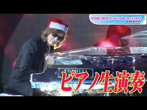 ロックバンド「X JAPAN」のYOSHIKIさんが12月23日、東京都内で行われた「EVENING/BREAKFAST with YOSHIKI 2022 in TOKYO」発表記者会見に登場。サンタ帽をかぶってピアノの生演奏を行った。