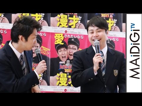 自動車事故で当て逃げしたとして活動を自粛し、3月から活動再開したお笑いコンビ「NON STYLE」の井上裕介さんが4月13日、イオンモール幕張新都心(千葉市美浜区)で行われた「ハイスクールマンザイ 2017~H-1甲子園~」の概要発表会見に登場。