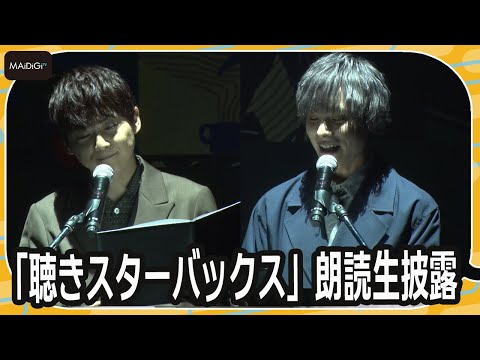 「聴きスターバックス」は、家庭用スターバックスコーヒー全6種類のフレーバーから、お気に入りのフレーバーを見つけもらうため、梶さんと岡本さんがそれぞれのフレーバーにあわせた6つのストーリーを朗読するコンテンツ。この日は、2人がイベント限定の生朗読を披露した。