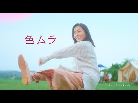 CMは、グランピング(ぜいたくなキャンプ)をしている中山さんが、45歳以上の人に多い肌の悩み「くすみ」「色ムラ」「シワ影」に見立てたピンクの大きなボールに、パンチやキックを繰り出し、「全部飛んでけー!」と言って明るくはじき飛ばす……という内容。