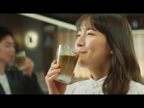 4月4日に発売される「綾鷹」ブランドの本格派ラテ「綾鷹カフェ」シリーズ第2弾「綾鷹カフェ ほうじ茶ラテ」のCMで、吉岡さんがオフィスで仕事に一区切りつけるシーンからスタート。同僚の「カフェにしますか」の一言で、「綾鷹カフェ ほうじ茶ラテ」のボトルを開けると、場面はオフィスからカフェへ早変わり。「ほうじの香りのカフェが来た」と笑みがこぼれる吉岡さん。「心をほぐす本格派ほうじ茶ラテ」と一言語り、「ほうじ茶ラテ」を飲むカフェから、元のオフィスに戻りホッと一息つく……という内容。