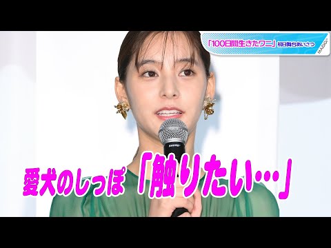 女優の新木優子さんが7月9日、東京都内で行われた、声優を務めた劇場版アニメ「100日間生きたワニ」(上田慎一郎監督、ふくだみゆき監督)の初日舞台あいさつに出席した。劇中のキャラクターがラーメンを好んで食べるように定期的に欲するものはあるかと聞かれると、愛犬のしっぽを挙げた。