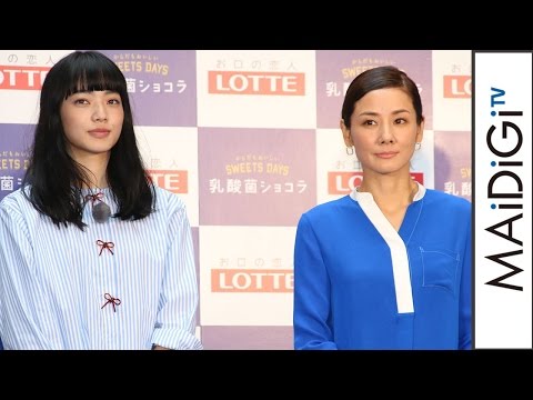 女優の吉田羊さんと小松菜奈さんが10月10日、東京・二子玉川で行われたロッテ「乳酸菌ショコラ」シリーズ新商品のPR発表会に登場。吉田さんは鮮やかな青のトップスにデニムパンツと白のヒール、小松さんは淡い水色のストライプシャツに白のスカートという秋らしいさわやかなファッションを披露した。