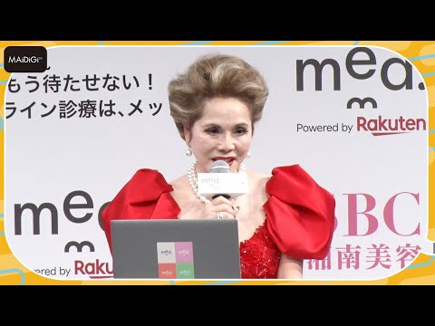 タレントのデヴィ夫人が9月25日、東京都内で行われたアイメッド「med.(メッド)」グランドオープン&CM発表会に出席した。