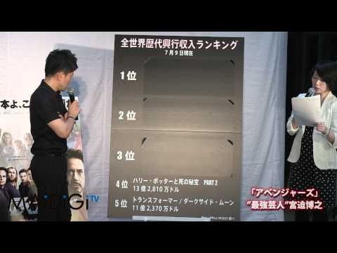 「アベンジャーズ」は、世界滅亡の危機を救うため、招集されたヒーローたちの最強チーム「アベンジャーズ」の活躍を描くエンターテインメント作品。アイアンマン(ロバート・ダウニーJr.さん)やキャプテン・アメリカ(クリス・エヴァンスさん)、ハルク(マーク・ラファロさん)、ブラックウィドウ(スカーレット・ヨハンソンさん)、ニック・フューリー(サミュエル・L・ジャクソンさん)、ホークアイらが登場し、日本語吹き替え版は宮迫さんのほか、ブラックウィドウ役を米倉涼子さん、ニック・フューリー役を竹中直人さんが務める。8月14日に全国で公開予定。(毎日新聞デジタル)
