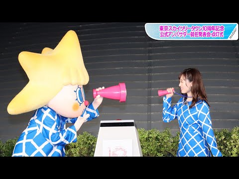 女優の福原遥さんが、5月22日に開業10周年を迎える東京スカイツリータウン(東京都墨田区)の公式アンバサダーに就任し、4月12日、同所で行われた公式アンバサダー就任発表会に、東京スカイツリーの公式キャラクター・ソラカラちゃんの着ぐるみとともに出席した。