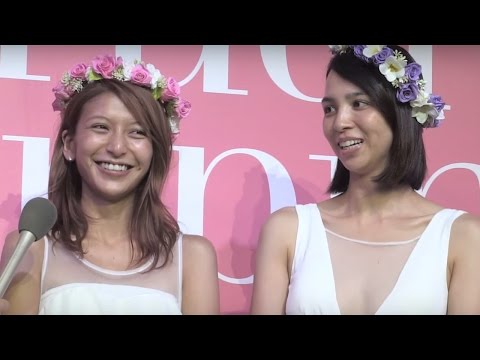 人気モデルの大石参月さんと鈴木サチさんが、「潤いに満ちたすっぴん美人」を表彰する「うるおいすっぴんミューズ2015」に選ばれ、8月4日、東京都内で行われた授賞式に、すっぴんで出席し、トークショーを行った。