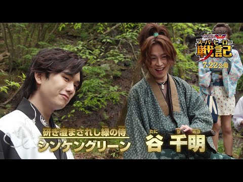 鈴木さんは「仮面ライダーとスーパー戦隊。このダブルヒーローの記念すべき作品に携わることができてうれしく思います。巡り合わせに感謝です。劇中では、現在最前線を走るヒーローたち、そして僕も観てきたヒーローたちと共に在れたことが純粋にうれしかった。いくつになってもこの心を踊らせてくれるヒーローたちは本当にすごい存在だと改めて感じました。10年以上の時を経て谷千明を演じさせてもらいましたが、これには感謝しかありません」とコメント。「作品を通して、ヒーローの歴史も感じ、そこに息づいていろいろな思いを感じました。この映画を見てくださる方々へもきっとそれは届くのだろうなと思っています。それぞれのヒーローへの思いを胸にぜひとも映画館でお楽しみください!! 一筆奏上!! シンケングリーン谷千明! 渾身(こんしん)の思いを“モヂカラ”に乗せて」と語った。