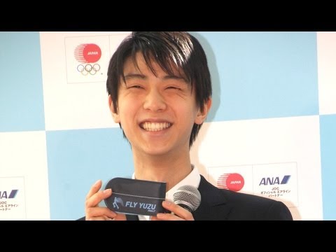 フィギュアスケートのソチ冬季五輪日本代表に決定した羽生結弦選手(ANA)が12月25日、羽田空港で行われたANAソチオリンピック日本代表応援記者会見に出席。