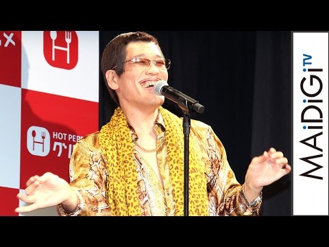 不思議ソング「ペンパイナッポーアッポーペン(PPAP)」で話題のピコ太郎さんと俳優の西島秀俊さんが11月10日、東京都内で行われたレストラン予約・グルメ情報サイト「ホットペッパーグルメ」新CM発表会に登場。