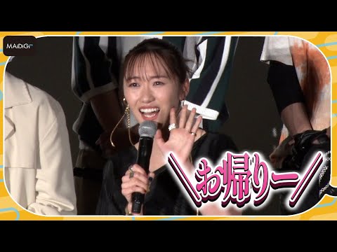 映画「仮面ライダーギーツ 4人のエースと黒狐」と映画「王様戦隊キングオージャー アドベンチャー・ヘブン」の公開初日舞台あいさつが7月28日、東京都内で行われ、「ギーツ」の劇場版でメロ役を演じた工藤遥さんが登場。スーパー戦隊シリーズ「快盗戦隊ルパンレンジャーVS警察戦隊パトレンジャー(ルパパト)」(2018~2019年)で早見初美花/ルパンイエローを演じていた工藤さんは、会場からの「おかえり」という呼びかけに、照れ笑いしつつ「ただいま!」と応じて声援と拍手を浴びていた。