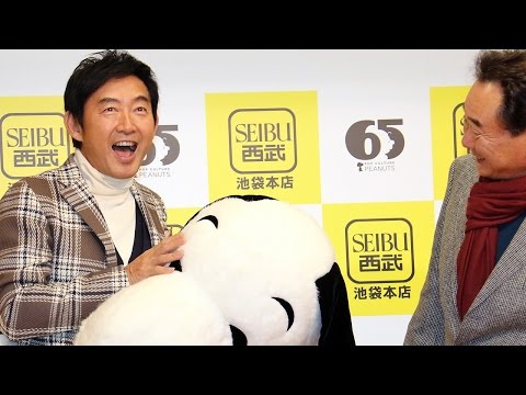 元プロ野球選手で野球解説者の東尾修さんと、娘むこでタレントの石田純一さんが12月9日、西武池袋本店(東京都豊島区)で行われた、スヌーピーらが登場するマンガ「PEANUTS」の連載開始65周年記念イベントに登場した。
