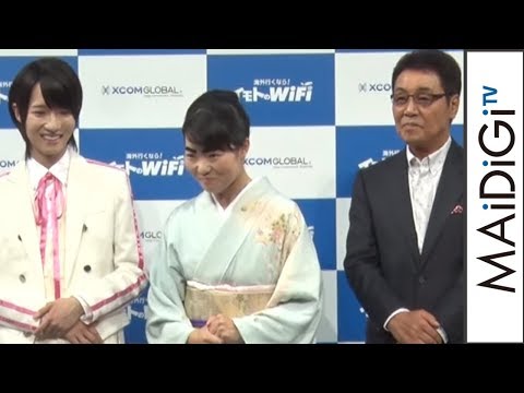 タレントのイモトアヤコさんが9月3日、東京都内で行われた海外向けWiFiレンタル「イモトのWiFi」新CM発表会に、東海発の5人組男性アイドルグループ「MAG!C☆PRINCE(マジックプリンス)」(マジプリ)、CM楽曲を歌う歌手の五木ひろしさんとともに登場した。