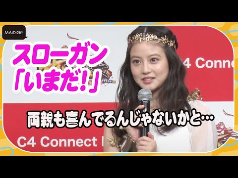 女優の今田美桜さんが9月1日、東京都内で行われた、ゲーム「放置少女~百花繚乱の萌姫たち~」の新テレビCM発表会に、CMと同じ女神の衣装で登場した。