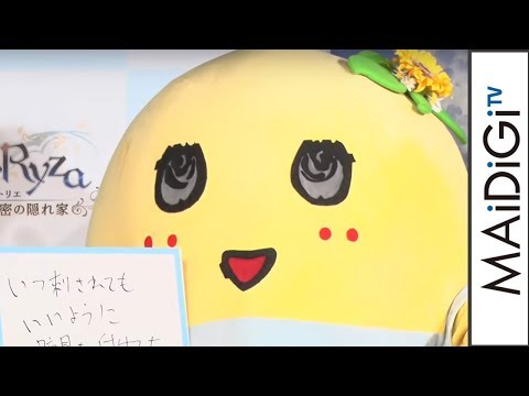 歌手で女優の神田沙也加さんと千葉県船橋市の非公認キャラクター「ふなっしー」が9月26日、東京都内で行われたゲーム「ライザのアトリエ」(コーエーテクモゲームス)の完成発表会に登場した。