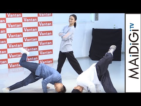 バンタンはファッションや映画映像などの人材を育成する専門校で、ブレイキンに特化した日本初の「ブレイキン専攻」は2018年4月に開校予定。この日は、ダンスが苦手だという岡田さんも講師の教えを受けて、ブレイクダンスに初挑戦。基本的なステップで踊りきった岡田さんだったが「もう筋肉痛です。(出来は)48点くらいです」と恐縮していた。