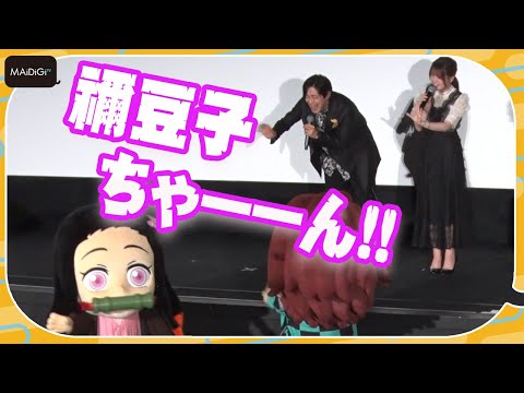 吾峠呼世晴(ごとうげ・こよはる)さんのマンガが原作のアニメ「鬼滅の刃」の劇場上映企画「ワールドツアー上映『鬼滅の刃』上弦集結、そして刀鍛冶の里へ」の公開記念舞台あいさつが2月4日、東京都内で行われ、主人公・竈門炭治郎(かまど・たんじろう)役の花江夏樹さん、禰豆子(ねずこ)役の鬼頭明里さん、我妻善逸(あがつま・ぜんいつ)役の下野紘さん、嘴平伊之助(はしびら・いのすけ)役の松岡禎丞さんが登場した。