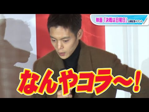 俳優の窪田正孝さんが主演を務める映画「決戦は日曜日」(坂下雄一郎監督)の公開記念イベントが1月8日、東京都内で行われ、窪田さんや共演の宮沢りえさん、赤楚衛二さん、坂下監督が登場した。