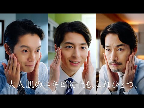 オールインワンジェル、「ウーノ アクネケア パーフェクションジェル」のCMで、先輩社員役の竹野内さんと窪田さんが、後輩社員役の高杉さんとともに、「大人肌のニキビ防止に洗顔だけ、は誤解!うるおいも必要」ということを伝えるストーリー。