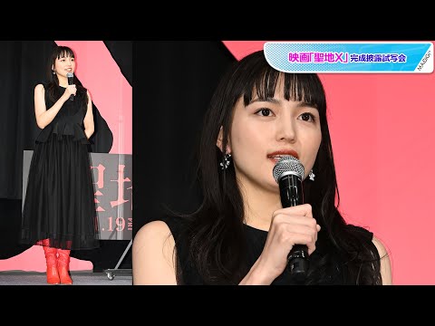 女優の川口春奈さんがこのほど、東京都内で行われた岡田将生さん主演の映画「聖地X」(入江悠監督、11月19日公開)の完成披露試写会の舞台あいさつに出席した。ふんわりとしたスカートが特徴的な黒いワンピースに、フリルが付いた個性的な形の黒いベルトを合わせたような装い。真っ赤なブーツをアクセントにし、甘辛ムードを演出していた。存在感のあるイヤリングやバングル、リングで華やかさをプラスしていた。