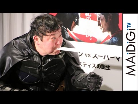 お笑いトリオ「ダチョウ倶楽部」の肥後克広さん、寺門ジモンさん、上島竜兵さんが3月1日、東京都内で行われた映画「バットマン vs スーパーマン ジャスティスの誕生」(ザック・スナイダー監督、25日公開)のイベントに登場。上島さんがバットマン、寺門さんがスーパーマンのコスプレ姿を披露した。