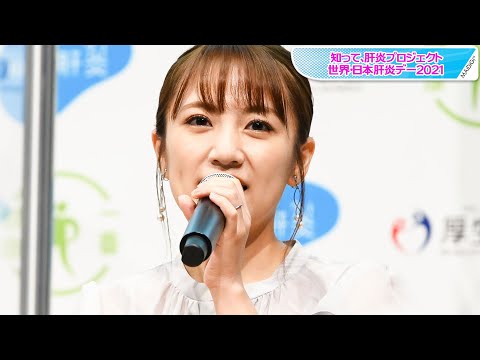 元「AKB48」でタレントの高橋みなみさんがこのほど、東京都内で行われた「知って、肝炎プロジェクト 世界・日本肝炎デー2021」に登場した。軽やかなムードのロングワンピースに、ストラップパンプスを合わせたシンプルな夏の装い。パール風の飾りが付いたロングイヤリングがいっそうフェミニンな印象で、髪は後れ毛を残したポニーテールにしていた。