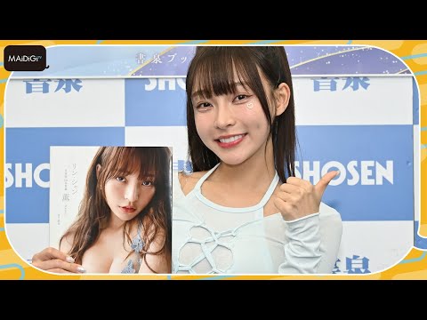 抜群のスタイルも魅力で「バストケア」について聞かれると「仰向けに寝てます。なるべく形が崩れないように」と明かした。写真集は4950円。