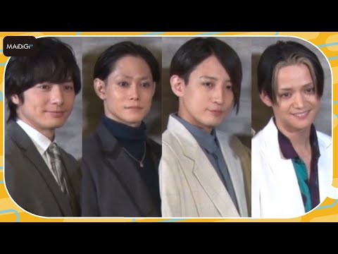 脚本・演出ほさかようさんによる新感覚の演劇ハイブリッド・イマーシブシアター「同窓会~優しくて残酷な彼を偲んで~」の取材会が1月11日、マリーグラン赤坂(東京都港区)で行われ、玉城裕規さん、和田琢磨さん、三浦涼介さん、陳内将さん、定本楓馬さん、松島勇之介さん、石川凌雅さんらが登場し、意気込みを語った。