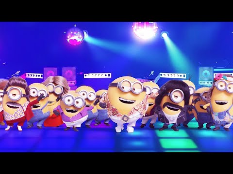 今回解禁されたのは、映画の舞台、1970年代をイメージしたファッションに身を包んだミニオンたちが、音楽に合わせてノリノリなダンスを披露する映像。スチュアート、ケビン、ボブ、そして本作の新ミニオンのオットーが登場し、その時代特有の個性的なファッションでキメキメのダンスを披露している。