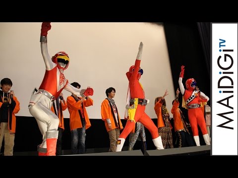 初日舞台あいさつには、「動物戦隊ジュウオウジャー」に出演している中尾さん、柳美稀さん、南羽翔平さん、渡邉剣さん、立石晴香さん、「手裏剣戦隊ニンニンジャー」の西川俊介さん、松本岳さん、中村嘉惟人さん、矢野優花さん、山谷花純さん、多和田秀弥さんが出席。ジュウオウジャーの國島直希さんは体調不良のため欠席した。