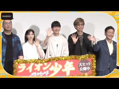 声優の花江夏樹さんと山口勝平さん、落合福嗣さん、山寺宏一さん、俳優の桜田ひよりさんが5月27日、東京都内で行われた映画「雄獅少年/ライオン少年」の公開記念舞台あいさつに登場した。