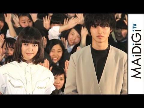 俳優の山崎賢人さんと女優の二階堂ふみさんが5月17日、映画「オオカミ少女と黒王子」(廣木隆一監督、28日公開)のPRのため、私立蒲田女子高校(東京都大田区)をサプライズ訪問した。「緊急全校集会」の名目で体育館に集合した約500人の全校生徒は、山崎さんらが登場すると大歓声を上げ、中には号泣する生徒もおり、パニック状態となった。