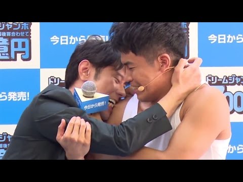 お笑いコンビ「ネプチューン」の原田泰造さんとタレントの武井壮さんが5月13日、東京・銀座の「西銀座チャンスセンター」で行われた「ドリームジャンボ宝くじ」&「ドリームジャンボミニ7000万」発売記念イベントに登場した。