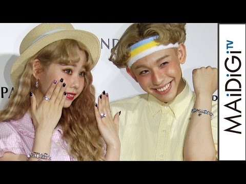 読者モデルカップルとして人気のぺこさんとりゅうちぇるさんが5月21日、東京・原宿で行われたジュエリーショップ「PANDORA表参道」のオープニングイベントに登場。この日、ぺこさんは「ピクニックに来たお嬢様」、りゅうちぇるさんは「ピクニックに来たエアロビボーイ」というテーマのコーディネートで登場。