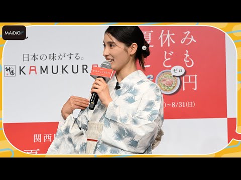 俳優の土屋太鳳さんが7月16日、東京都内で行われた「どうとんぼり神座 新CM&夏休みこども0円キャンペーン発表会」に登場した。