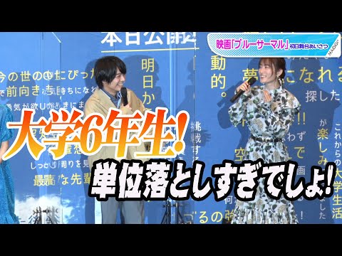 大学の体育会航空部が舞台の小沢かなさんの青春マンガが原作の劇場版アニメ「ブルーサーマル」(橘正紀監督)の初日舞台あいさつが3月3日、東京都内で行われ、女優の堀田真由さん、声優の島崎信長さん、榎木淳弥さん、小松未可子さんが登場した。