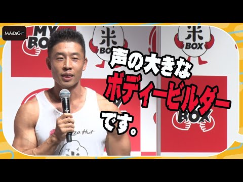 お笑い芸人のなかやまきんに君が8月17日、東京都内で行われたピザハット新商品「ごはんピザ MY BOX」発表会に登場した。
