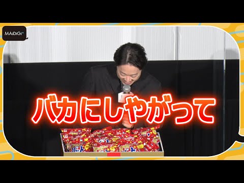 舞台あいさつには、お笑いトリオ「我が家」の坪倉由幸さん、水田監督も出席。イベントでは、阿部さんにサプライズで大量のお菓子がプレゼントされた。