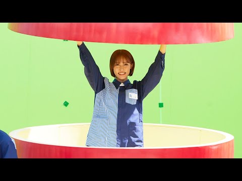 新CMは、梅沢さんが秋の行楽でりんご狩りにやって来ると、大きなりんごを乗せたリヤカーを引く松山“店長”と遭遇。突然、そのりんごの中から王林さんがパカッと登場するというストーリー。