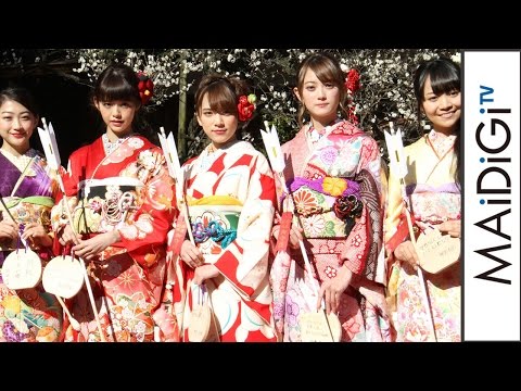また紫の振り袖を着た田辺さんは「顔立ちが幼いので、紫の着物できれいに見せられたらと思いました。襟に黄色が入っていて、今年っぽい、モダンな柄にしました」とにっこり。目標について聞かれると「河北麻友子さんです。女優、モデル、バラエティーと活躍されていて、ビューティーモデルをしているので、化粧品の広告やドラマに出演したい」と語った。神沢さんは「(目標は)中川翔子さん。私は二次元が好きなのですが、中川さんのように好きなことをとことんやってみたい。今年は、アニメ声優にも挑戦してみたい」と宣言した。