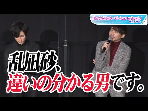 人気スマートフォン用ゲームが原作のアニメ「あんさんぶるスターズ!!」の完全新作「あんさんぶるスターズ!!-Road to Show!!-」の先行上映会が2月26日、新宿ピカデリー(東京都新宿区)で開催され、乱凪砂役の諏訪部順一さんら声優陣が登場した。諏訪部さんは、注目のシーンとして「コーヒーの香りを楽しむ乱凪砂」を挙げた。