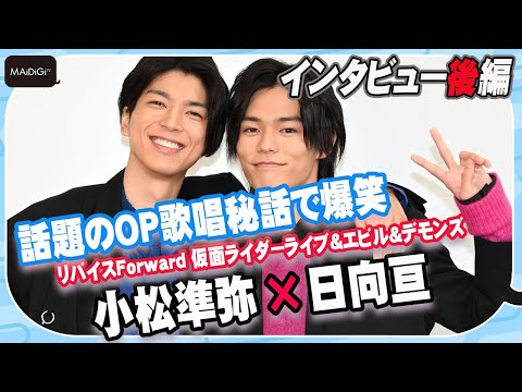 特撮ドラマ「仮面ライダーリバイス」(テレビ朝日系)の続編となるVシネクスト「リバイスForward 仮面ライダーライブ&エビル&デモンズ」が2月10日から期間限定で上映される。本作は五十嵐大二と門田ヒロミの2人が主人公で、テレビシリーズと映画「仮面ライダーギーツ×リバイス MOVIEバトルロワイヤル」の“その後”を描く。ダブル主演を務める五十嵐大二/仮面ライダーライブ役の日向亘さん、門田ヒロミ/仮面ライダーデモンズ役の小松準弥さんに、制作が決まったときの心境や役への思いを聞いた。