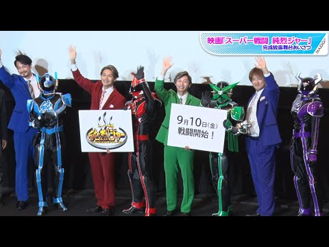 4人組音楽ユニット「純烈」が主演を務める映画「スーパー戦闘 純烈ジャー」(佛田洋監督、9月10日公開)の完成披露舞台あいさつが8月26日、東京都内で行われた。