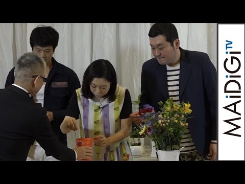 お笑いタレントの椿鬼奴さんと夫でお笑いトリオ「グランジ」の大さんが5月2日、東京都内で行われた「よしもと園芸」の開設発表会見に出席した。