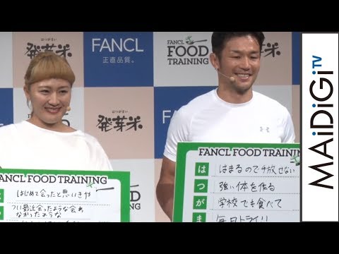 連続ドラマ「ノーサイド・ゲーム」(TBS系)で、ラグビーチーム「アストロズ」の不動のエース・浜畑譲を演じたラグビー元日本代表の廣瀬俊朗(ひろせ・としあき)さんが10月30日、東京都内で行われた「FANCL FOOD TRAINING」記者発表会に元サッカー日本女子代表の丸山桂里奈さんと登場した。