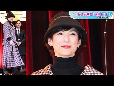 女優の鈴木保奈美さんがこのほど、東京都内で開催されたNetflix(ネットフリックス)の映画「浅草キッド」の配信記念イベントに出席した。黒いタートルネックニットに千鳥格子のジャケットとスカート、ハット、パール風のイヤリングを合わせたクラシカルな大人の装い。透け感のあるタイツ、黒いサンダルで美脚をのぞかせていた。