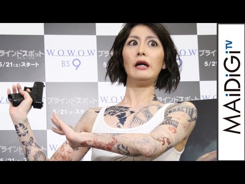 お笑い芸人の鳥居みゆきさんが4月4日、東京都内で行われたWOWOWで放送する海外ドラマ「ブラインドスポット タトゥーの女」の会見に出席。全身がタトゥーで埋めつくされている劇中の主人公のように、全身にタトゥーのようなボディーペイントを施し、タンクトップ姿で登場した鳥居さんは、この日のために約1カ月で5キロ減量したという引き締まったボディーを披露。ボディーペイントには約7時間半かかったといい、「かなりやせたと思いません? 昔タトゥーを入れたいと事務所に言ったらダメですって。だから今回、本望ですね。すごくいいからだ。エロくなった?」と上機嫌でアピールしていた。