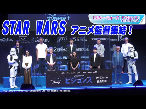 「スター・ウォーズ:ビジョンズ」は、トリガー、神風動画、キネマシトラス、サイエンス SARU、ジェノスタジオ、スタジオコロリド、プロダクション I.Gのアニメ制作会社7社が、それぞれオリジナル短編アニメを制作するプロジェクト。イベントには、今石洋之監督、水崎淳平総監督、垪和等監督、チェ・ウニョン監督、ベル・ゴンゴラ監督、五十嵐祐貴監督、木村卓監督、大塚雅彦監督、神山健治監督が登場。ルーカスフィルムからのコメント映像も公開された。